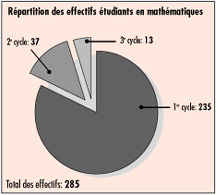 Le département de mathématiques regroupe plusieurs domaines de l'activité mathématique, tels que les mathématiques pures et appliquées, la didactique des mathématiques et l'actuariat. Les activités professionnelles des diplômés sont des plus diversifiées, certains oeuvrant au sein de firmes de consultants, d'institutions financières ou de compagnies d'assurance-vie, d'autres menant des carrières dans l'enseignement ou la recherche. La recherche sous tous ses angles Les activités de recherche du département ont permis la formation de plusieurs groupes et laboratoires parmi lesquels figurent: